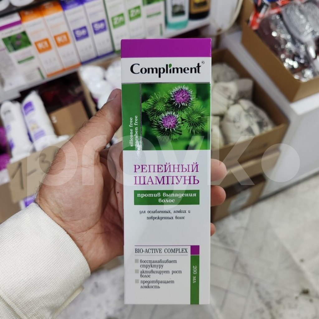 Saç tökülməsinə qarşı şampun Kompliment burdock şampunu