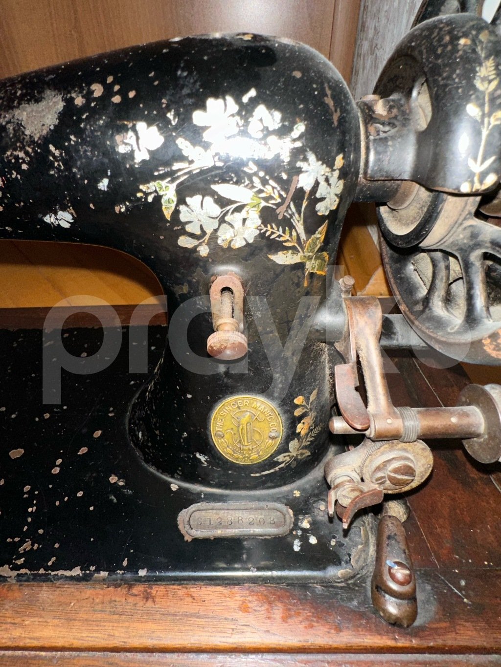 Orijinal Singer markalı, əl ilə idarə olunan antik tikiş maşını. Təxminən 1910–1920-ci illərə aid istehsal olunmuşdur. Üzərində istehsalçı loqosu və seriya nömrəsi mövcuddur ki, bu da orijinallığını təsdiq edir.