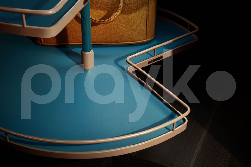 Qarderob üçün nəzərdə tutulan üç mərtəbəli fırlanan künc mexanizmi hər bir evdə olmalıdır. Əşyalarınızı nizamlı saxlamaq üçün funksional və yerə qənaətcil bir həlldir.Yumşaq təbii bəzəklərlə birləşdirilmiş eko dəri qarderobunuza xüsusi bir görüntü əlavə edir.
